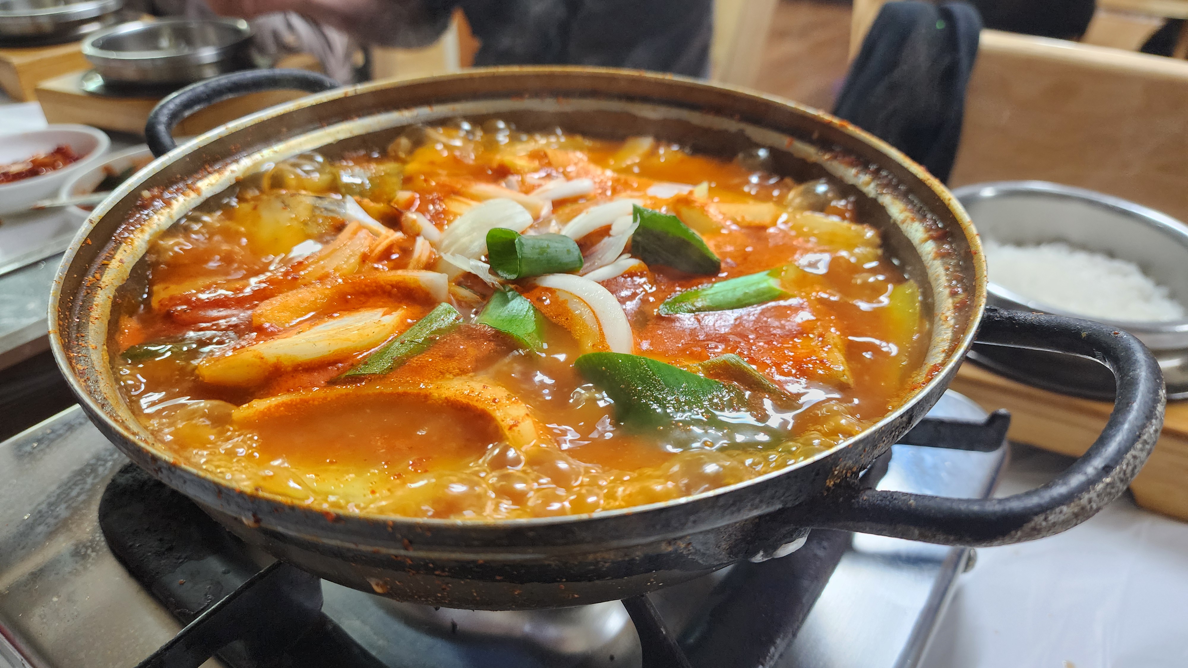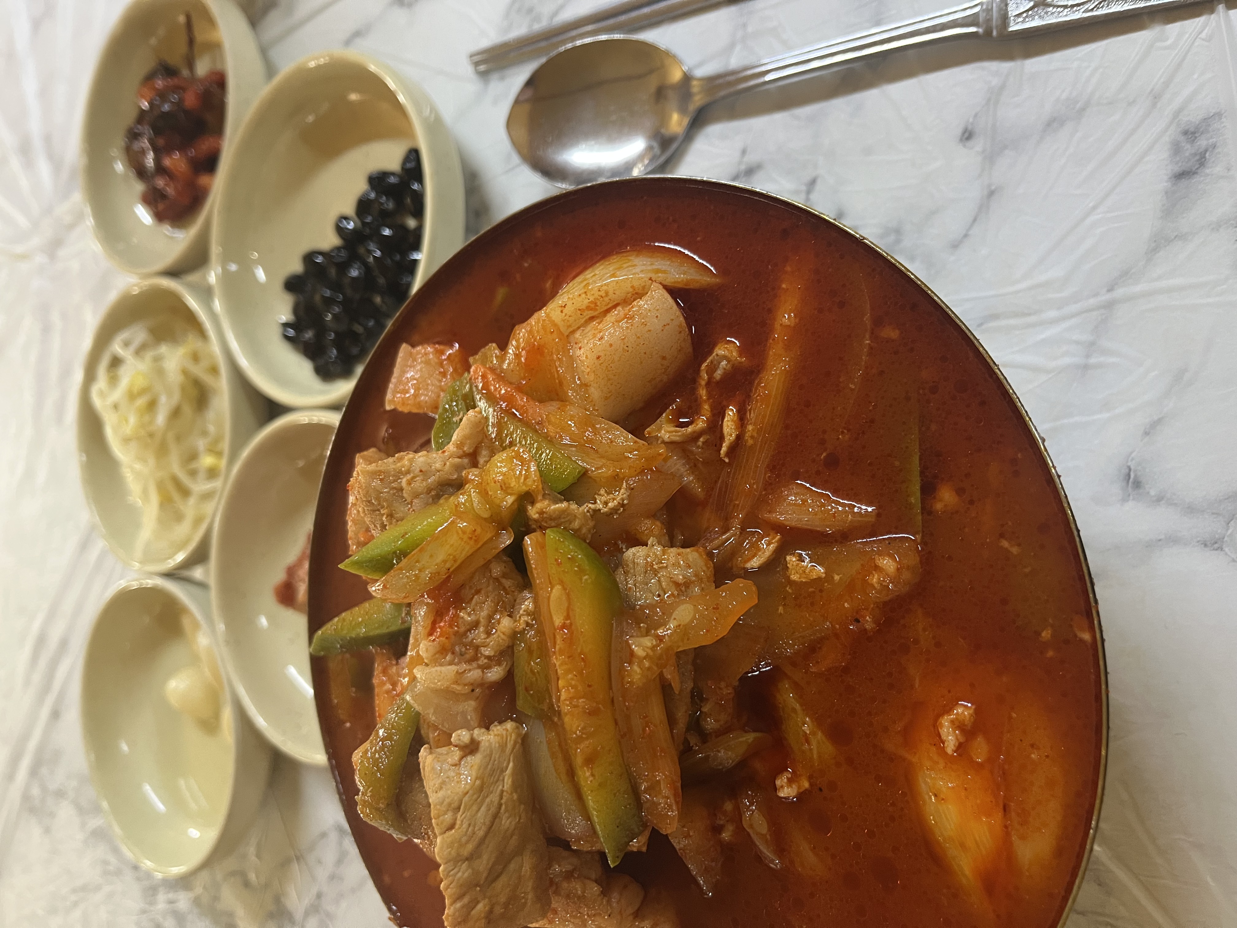 (2025-04-01) 광주 명화식육식당 애호박국밥. 여전히 맛있지만 혼자서 이 많은 걸 다 먹을 순 없었다. 밥 다 남김. 그래도 둘이 와서 하나를 주문할 순 없을 것 같은데. 매번 남길 수도 없고.