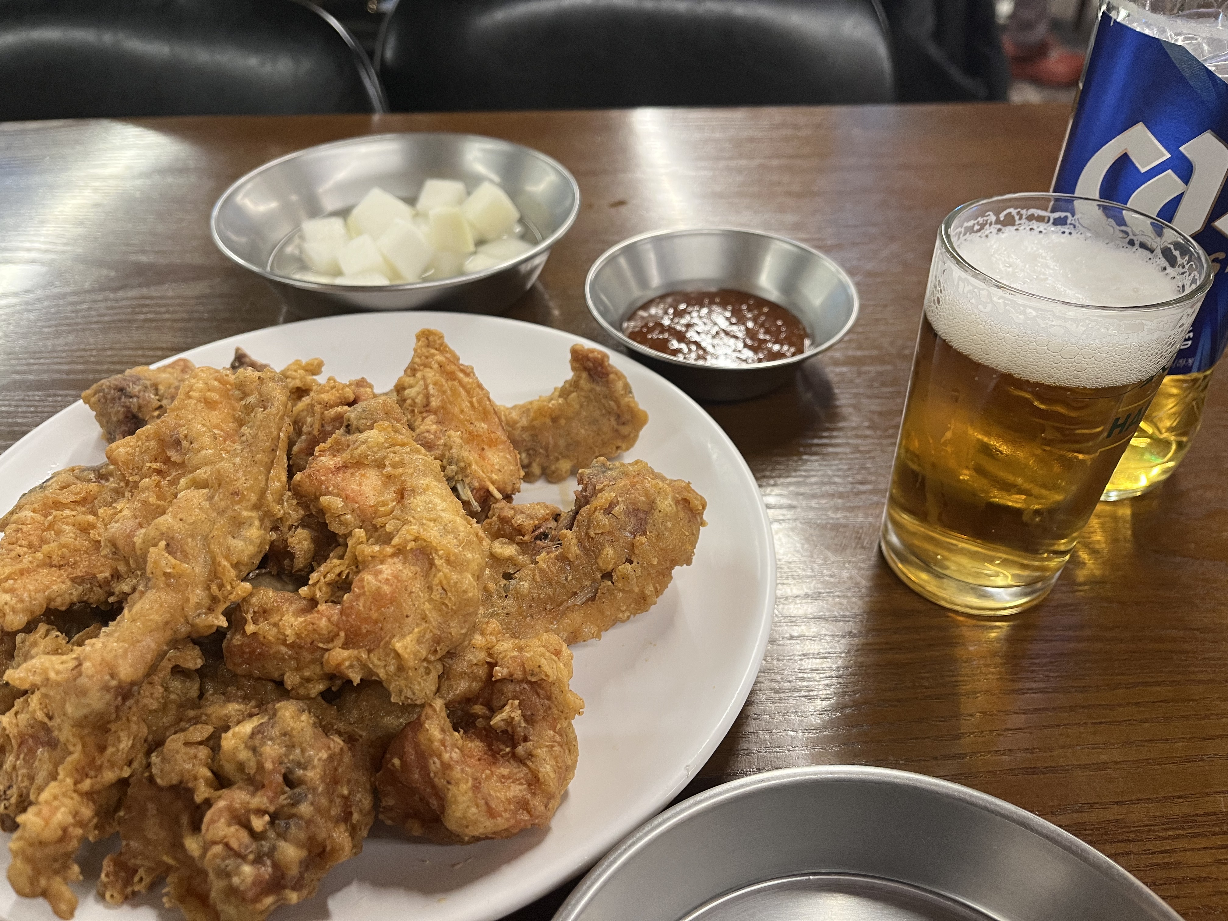 (2025-04-01) 양동시장 1969양동통닭에서 혼치킨(반마리) 시도 성공! 튀긴 닭발이 포인트같은데 남김 ㅋㅋ