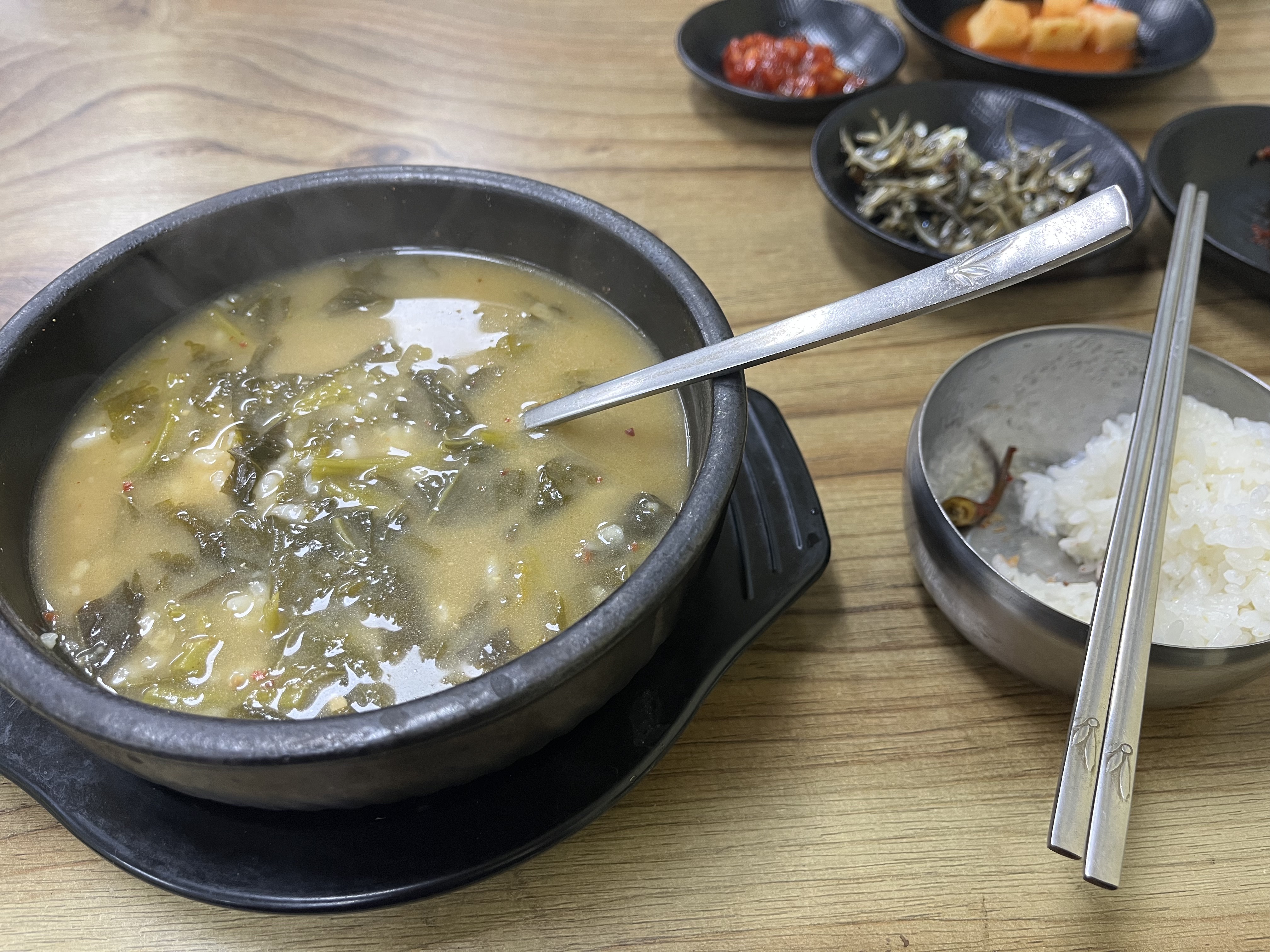 (2025-04-05) 이번 여행의 마지막 식사. 군산 일출옥 아욱국. 먹던 걸 찍으니 좀 거시기하네 ㅋㅋ